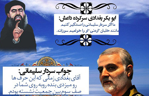 ابوبکر بغدادی در یکی از خطبههای نماز جمعه گفته بود: ما اگر سردار سلیمانی را دستگیر کنیم مانند خلبان اردنی آن را در آتش خواهیم سوزاند و گفته میشود جواب سردار سلیمانی در واکنش به این موضوع بدین شره است: