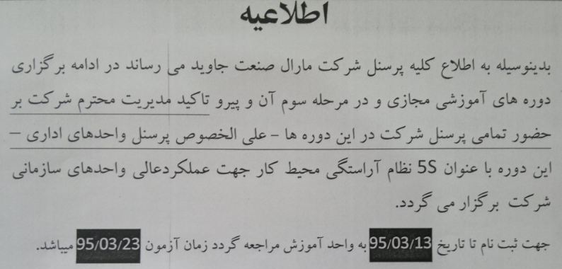 به ابتکار اعضای محترم شورای پایگاه شهدای خیبر شرکت مارال صنعت این دوره آموزشی برگزار می گردد.